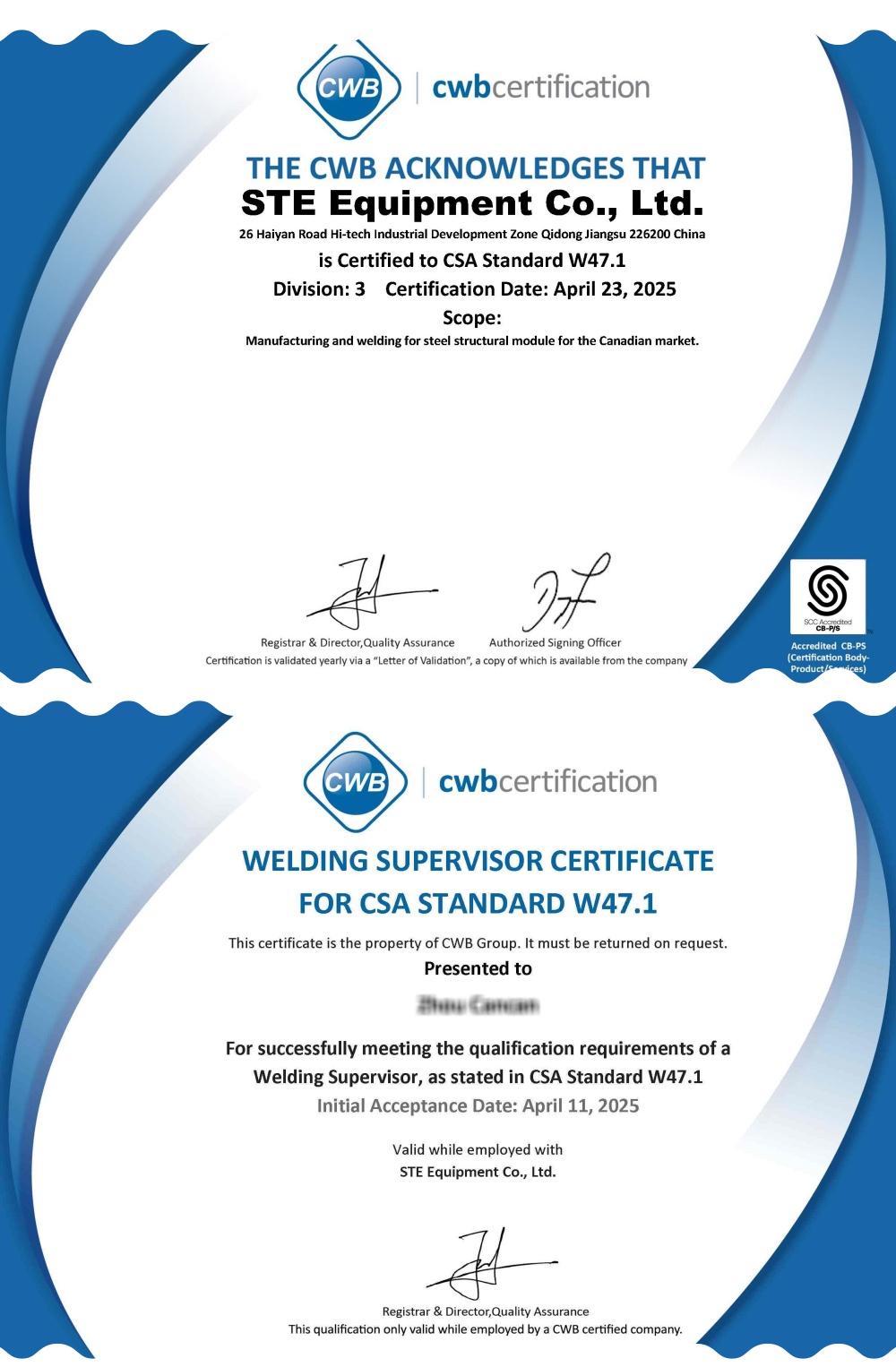 我司榮幸地宣布,已與國(guó)際著名的工業(yè)氣體公司達(dá)成合作,共同推進(jìn)加拿大撬塊項(xiàng)目。此次合作不僅標(biāo)志著我司在業(yè)務(wù)拓展上的新跨越,更實(shí)現(xiàn)了公司在結(jié)構(gòu)焊工領(lǐng)域取得CWB(加拿大焊接局)證書(shū)的重要突破,這一認(rèn)證不僅彰顯了我們?cè)诤附蛹夹g(shù)領(lǐng)域的卓越能力,也為我們?cè)趪?guó)際市場(chǎng)的競(jìng)爭(zhēng)中奠定了堅(jiān)實(shí)的基礎(chǔ)。這一里程碑式的成就,將為我司在未來(lái)的國(guó)際市場(chǎng)競(jìng)爭(zhēng)中增添強(qiáng)勁動(dòng)力,我們堅(jiān)信,此次合作將為雙方帶來(lái)共贏的局面,并為客戶(hù)提供更優(yōu)質(zhì)的產(chǎn)品和服務(wù)。